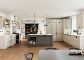 Accessorising this kitchen with mantle shelves or wine and plate racks creates